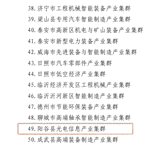 近日,省發改委公布省“十強產業”雁陣形產業集群、第二批支柱型雁陣集群、集群領軍企業名單。其中,聊城市大健康產業集群、陽谷光電信息產業集群新入選2025年度省“十強產業”雁陣形產業集群,和濟南市、泰安市、菏澤市聯合申報的沿黃中醫藥產業集群新入選省第二批支柱型雁陣集群,山東信發瑞捷新材料科技有限公司新入選省“十強產業”集群領軍企業。截至目前,我市共有省“十強產業”雁陣形產業集群11家、支柱型雁陣集群3家、集群領軍企業12家。